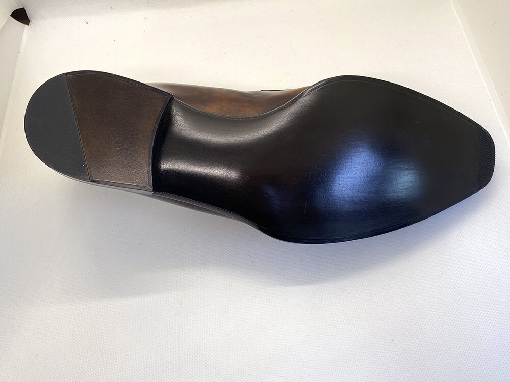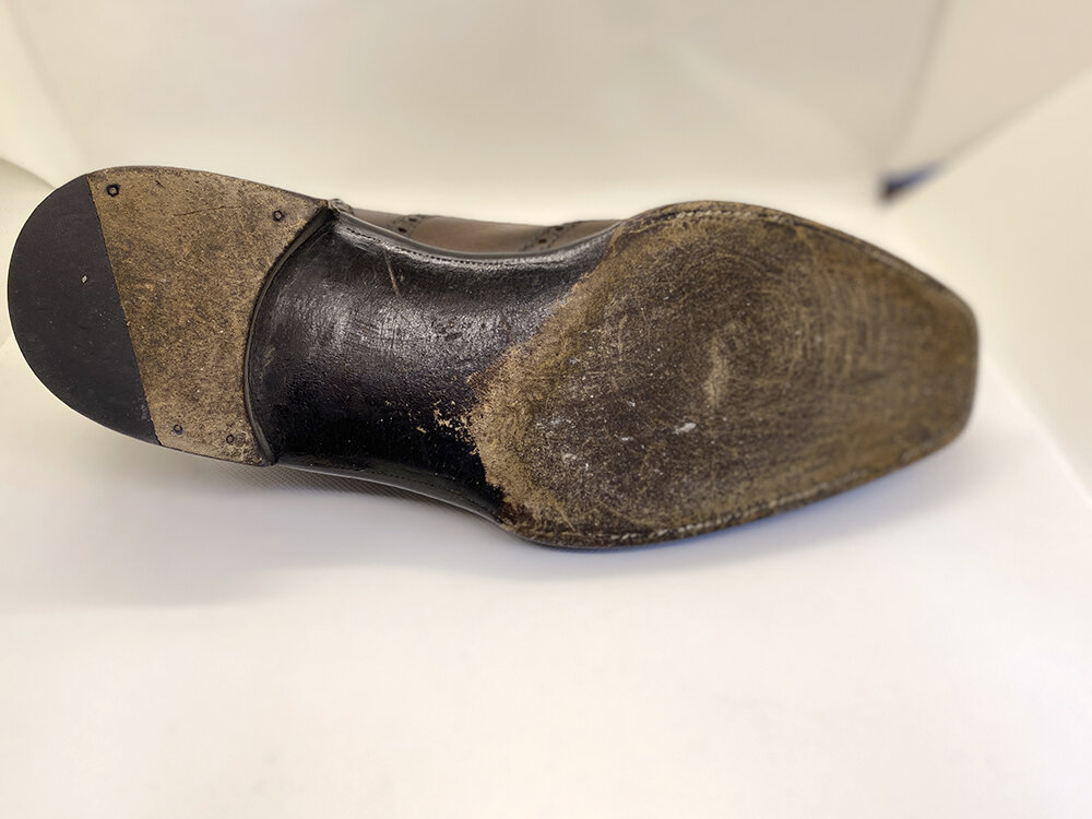 ソールに穴が空いたり、薄くなってきましたらオールソール取り替えが必要ですので、当店にお持ち寄りくださいませ。靴に木型を入れ直すため、アッパーのシワも伸ばし、保湿ケアも丁寧に行えますので新品により近い状態に戻せます。